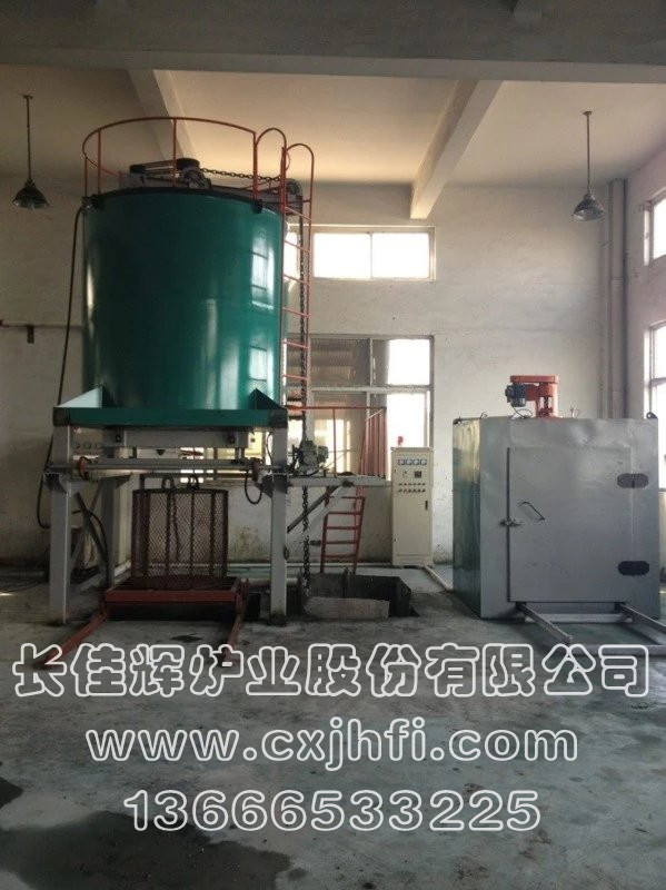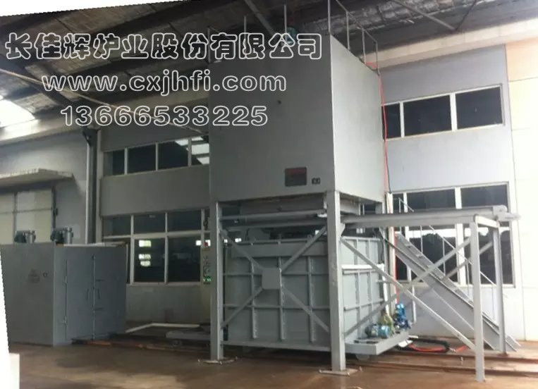 立式鋁合金固溶(淬火)爐 此設(shè)備可根據(jù)用戶要求進(jìn)行定制、定做,服務(wù)熱線:13666533225 我公司生產(chǎn)的鋁合金固溶(淬火)爐有電加熱和燃?xì)饧訜岫N加熱方式,主要適用于鋁材焊接件、鋁鑄件及各種鋁合金產(chǎn)品進(jìn)行淬火、固溶處理,工件的落水時(shí)間≤15秒。 操作流程:人工上料(推至預(yù)備位置)→爐蓋開啟→料勾下降→人工掛鉤→料框上升至加熱區(qū)→爐蓋關(guān)閉→根據(jù)產(chǎn)品工藝要求升溫、保溫→移動水池就位→爐蓋開啟→料框下降至移動水池內(nèi)進(jìn)行固溶→料框上升→移動水池退回→料框下降至平臺→(脫鉤)人工拉出→(整形處理后)推至?xí)r效爐進(jìn)行時(shí)效處理。