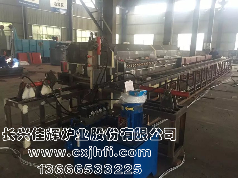 推舟式燒結(jié)爐 此設(shè)備可根據(jù)用戶要求進(jìn)行定制、定做,服務(wù)熱線:13666533225 推舟式燒結(jié)爐系連續(xù)式生產(chǎn)型工業(yè)爐,利用石墨板承載不銹鋼料盒,配合推桿一盒接著一盒地推至加熱區(qū)內(nèi)部,在氣氛保護(hù)狀態(tài)下進(jìn)行粉末還原、粉末冶金制品的燒結(jié)等熱處理。 用戶可選擇性采購料盒回旋裝置,整體成連貫式生產(chǎn)。 該生產(chǎn)線具有控制先進(jìn)、方便、節(jié)能顯著、維修方便等特點(diǎn),全線加熱區(qū)均采用PID多區(qū)控溫。保護(hù)氣氛可以選擇采用氮?dú)饣驓涞旌蠚怏w保護(hù)。