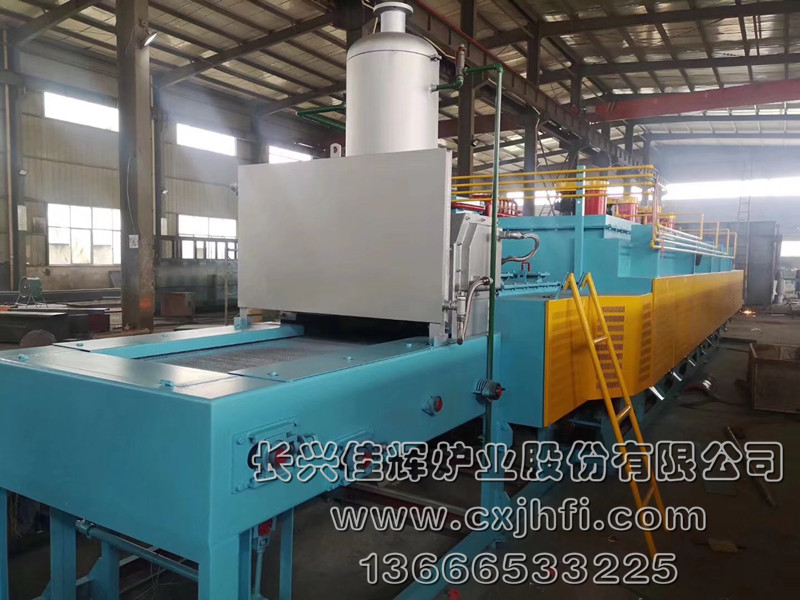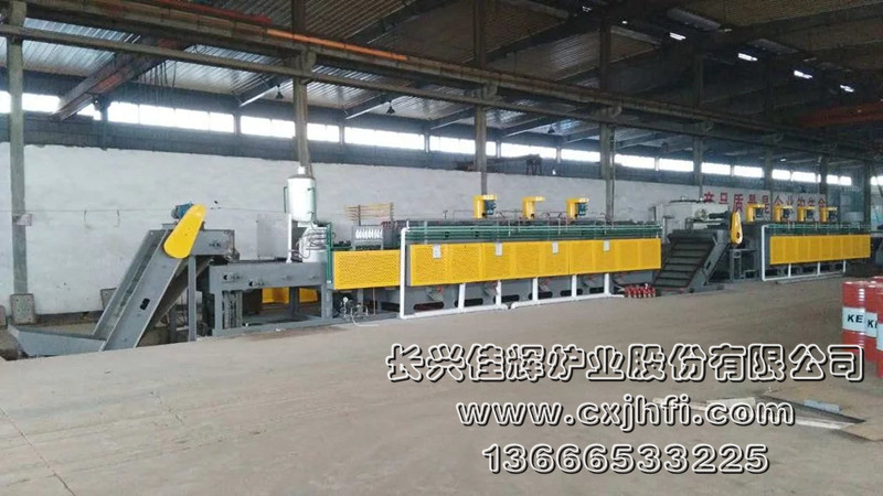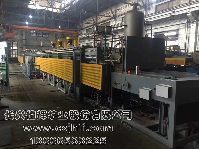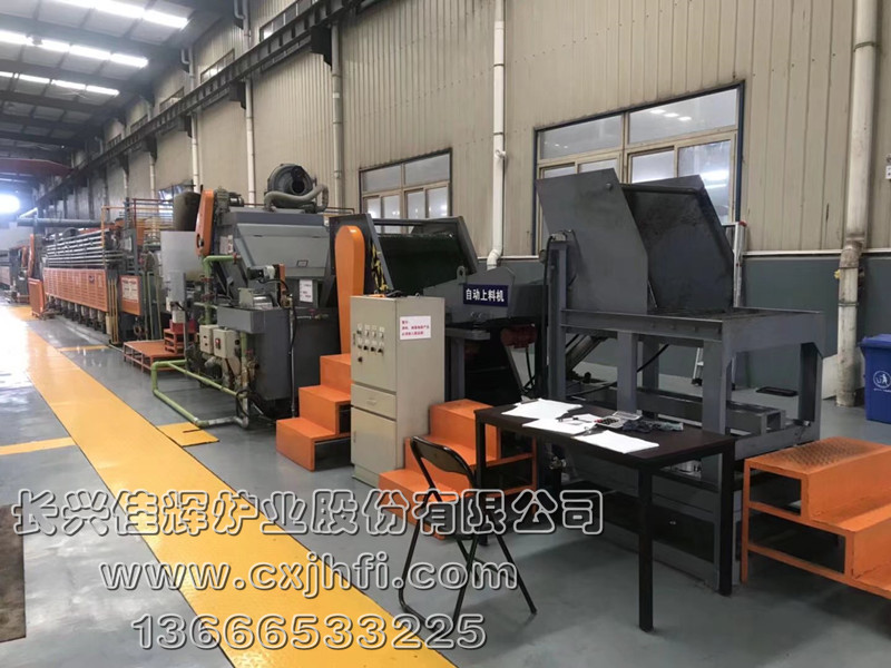 無馬弗托輥式網帶爐熱處理生產線 此設備可根據用戶要求進行定制、定做,服務熱線:13666533225 1.本熱處理生產線采用臺灣爐型、技術、標準制造、檢驗,關鍵部品采用進口產品,國內組裝,整體質量達到進口同等水平。 2.廣泛適用于各種標準件、緊固件、軸承鏈條工具、齒輪及其他小型金屬零件在氣氛保護狀態下進行批量淬火、調質、滲碳等熱處理。 生產線特長: 1.我公司擁有一支經驗豐富的設計隊伍。我公司所銷售的產品可控氣氛及保護氣氛熱處理爐占98%,人機界面計算機控制占81%。能耗均低于GB/T17358規定的工藝電能耗標準。 2.本設備結構先進,采用全套進口技術、標準制造、檢驗,整體質量達到進口同等水平,選用國內外優質材料和元器件而制造的托輥網帶式連續熱處理爐。 3.本設備適用于各種中小型金屬零件的批量熱處理生產,自動化程度高,勞動強度低,生產效率高。 4.設備機械性能穩定,故障率低,操作簡便。 5.現場工作環境清潔、無污染,符合綠色環保產品要求。 6.淬火爐采用直噴式燒嘴輻射管加熱、回火爐采用直噴式燒嘴加熱。 7.淬、回火爐網帶運行采用托輥同步傳動,使網帶運行時承受Z小張力,提高使用壽命;網帶運行連續均勻,與間斷進給的傳動相比消除了網帶返退缺陷和工件經過落料口因時間不同而引起的硬度不均勻的現象。 8.淬火爐前端增設預熱室,節省能量消耗;整機功率配備較低,熱能利用效率高,節能環保是本公司設備的特點。 9.淬火爐輻射管燒嘴為德國LBE公司技術的產品,點火電極、點火控制器、燃氣電磁閥、空氣電磁閥等均為進口技術產品,使用可靠、穩定。 10.生產線具備完整的電氣自動控制、安全聯鎖和報警功能?删幊檀鎯100多個工件的工藝程序數據,工藝參數、程序可隨時修改、增刪;整套系統按照編制好的程序全自動自動運行,在需要時也可實現手動運行;控制系統顯示屏完整顯示系統運行過程狀況,并能實現運行過程的連續記錄