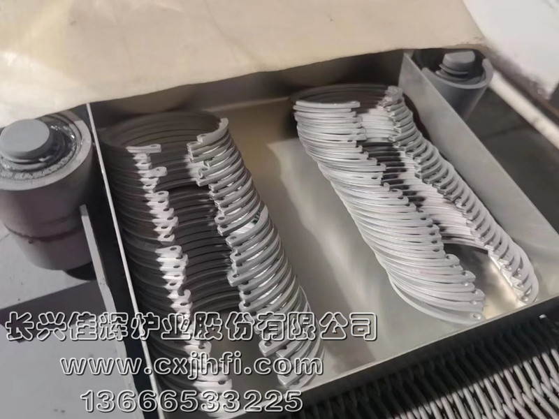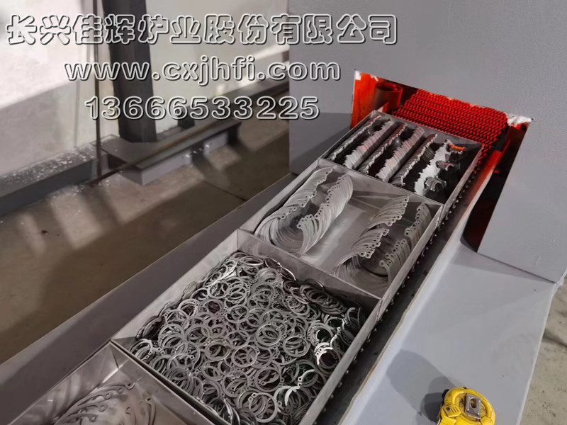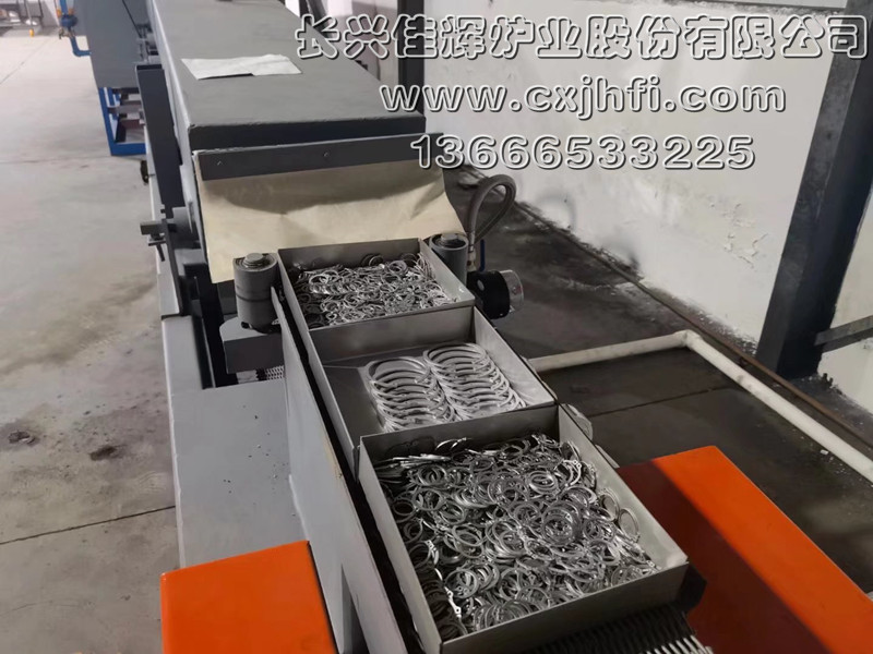 不銹鋼卡簧光亮熱處理爐 此設備可根據用戶要求進行定制、定做,服務熱線:13666533225 RST型不銹鋼卡簧光亮退火爐,適用于不銹鋼卡簧及其他不銹鋼管件、拉伸件、零部件等在可控氣氛(氫氮混合氣體)保護下,進行光亮固溶、去應力退火、消磁等熱處理工藝的專用設備。 金屬及奧氏體產品在彎曲、拉伸、鍛壓、切削、鑄造、焊接等加工 不銹鋼產品退火溫度:950~1080℃,在此溫度下為防止產品與空氣接觸產生氧化(變黑),我公司采用氫氮混合氣體進行保護,保證產品進爐前和出爐后的顏色及光澤度一致。 產品退火處理后,表面光亮無氧化,內應力消除,便于后期的繼續拉伸或成品出貨。本設備取代傳統的退火處理(傳統的高頻退火處理后,產品表面氧化成黑色,需進行后序的酸洗處理,污染環境),本生產線大大提高了生產效率,降低勞動強度及成本,改善工人的勞動環境,達到高效、節能、環保的要求。 該生產線具有控制先進、節能顯著、維修方便等特點,工件輸送采用耐高溫金屬鋼帶或網帶變頻調速,全線加熱區均采用PID自動多區控溫。